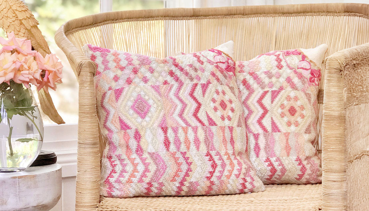 Nahuala also does a lot of mauve / purple, which can be a hard colour to place in a decor setting. Pink is their most popular colour and fortunately is always going to be easy to decorate with. Available pink Nahuala pillows here