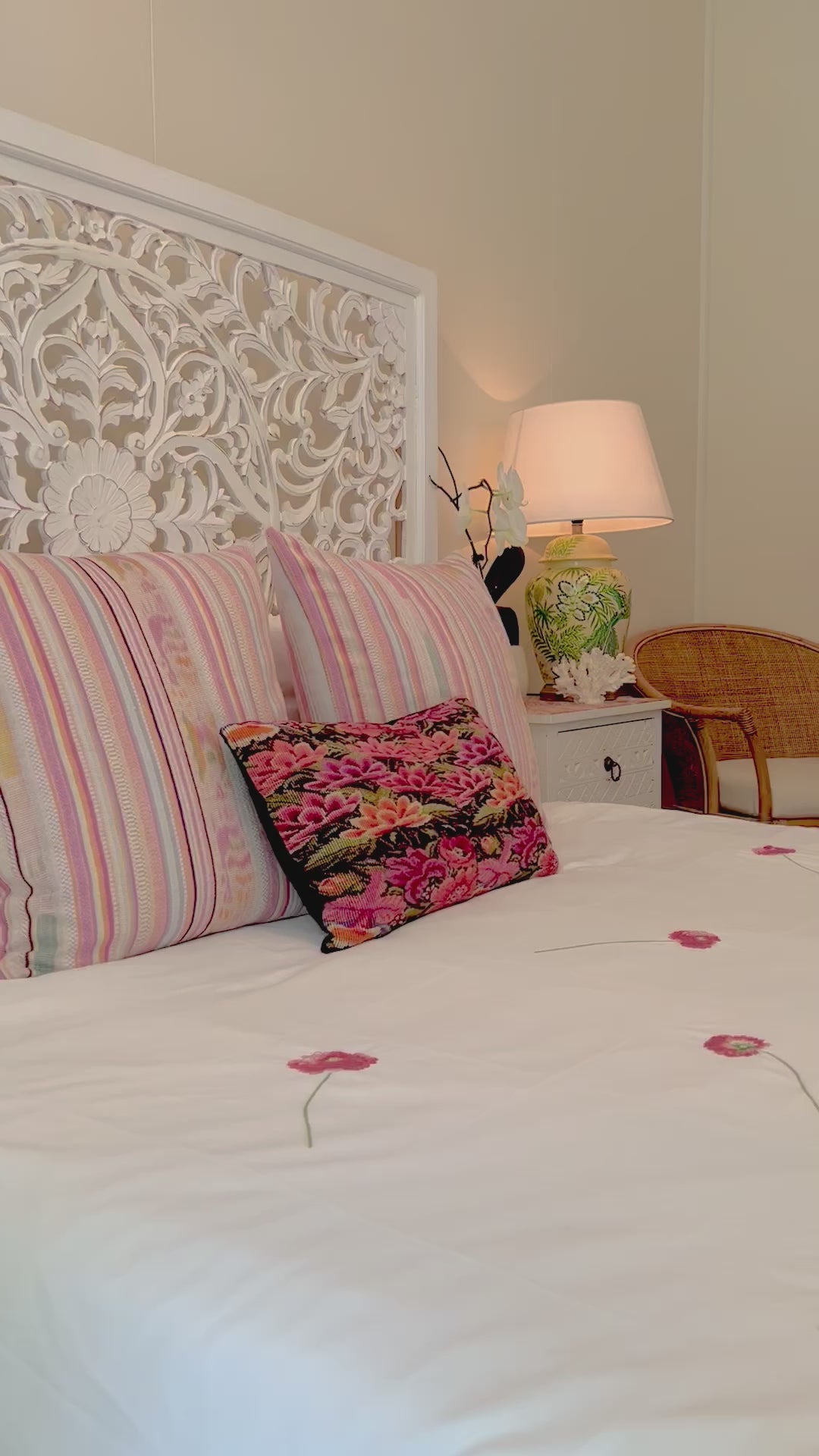 These coral pillows are exquisite! Willow has done it again with her beautifully selected textiles so expertly transformed into jewel-like pillows. Thank you for shipping so speedily to Southern California, too.
