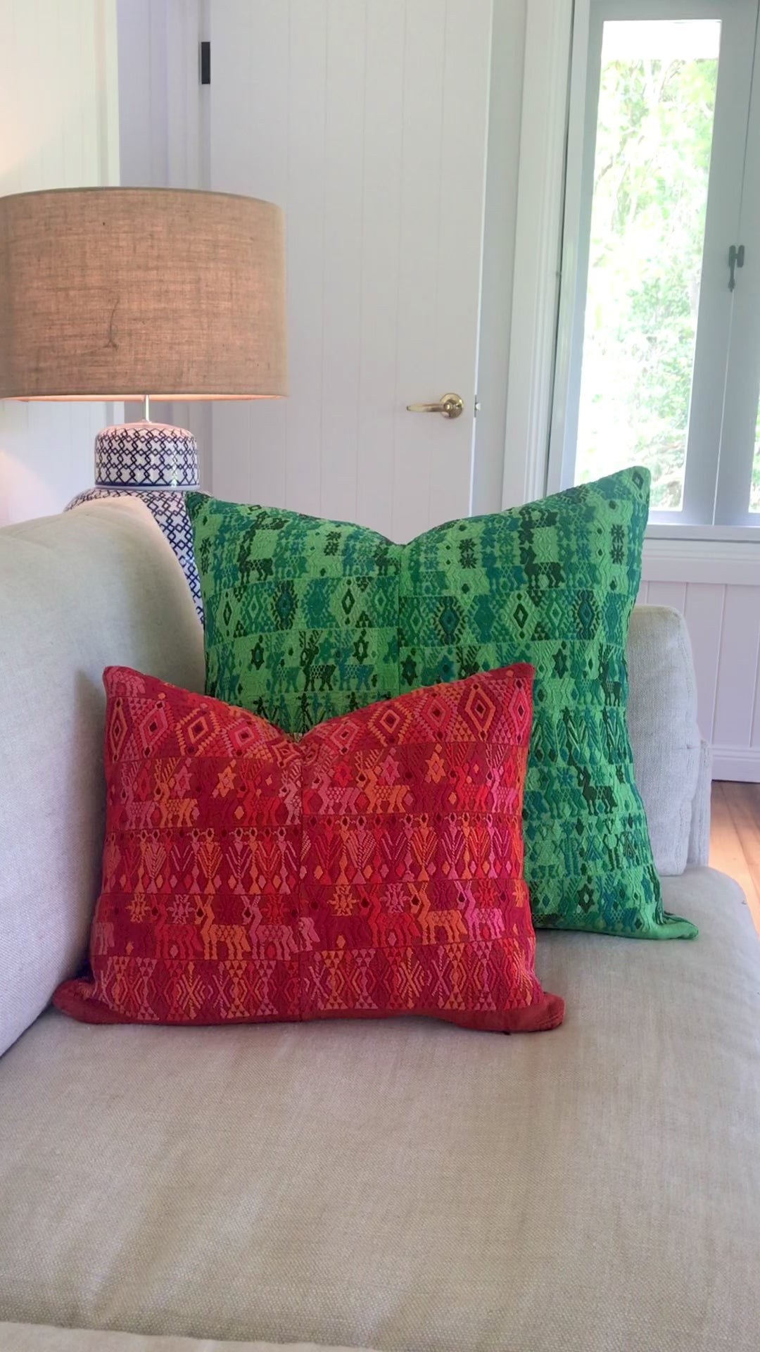 Once a Guatemalan Mayan woman's huipil and corte, these textiles have been given new life as gorgeous accent cushions.